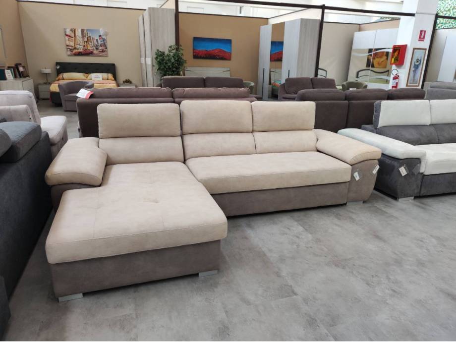 Divano angolare 3 posti con letto estraibile, penisola contenitore destra o sinistra e poggiatesta reclinabili
