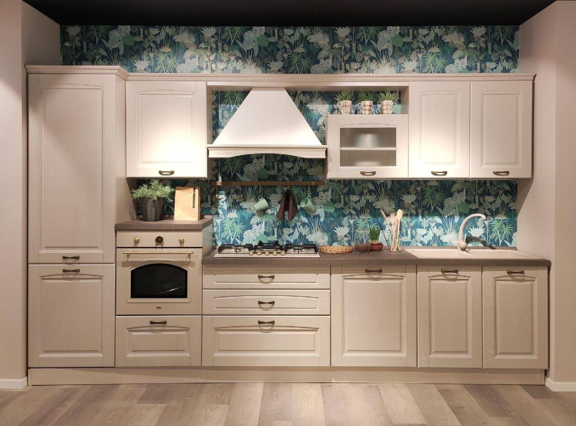 Cucina lineare componibile completa di 4 elettrodomestici (frigorifero, forno, piano cottura, lavastoviglie)