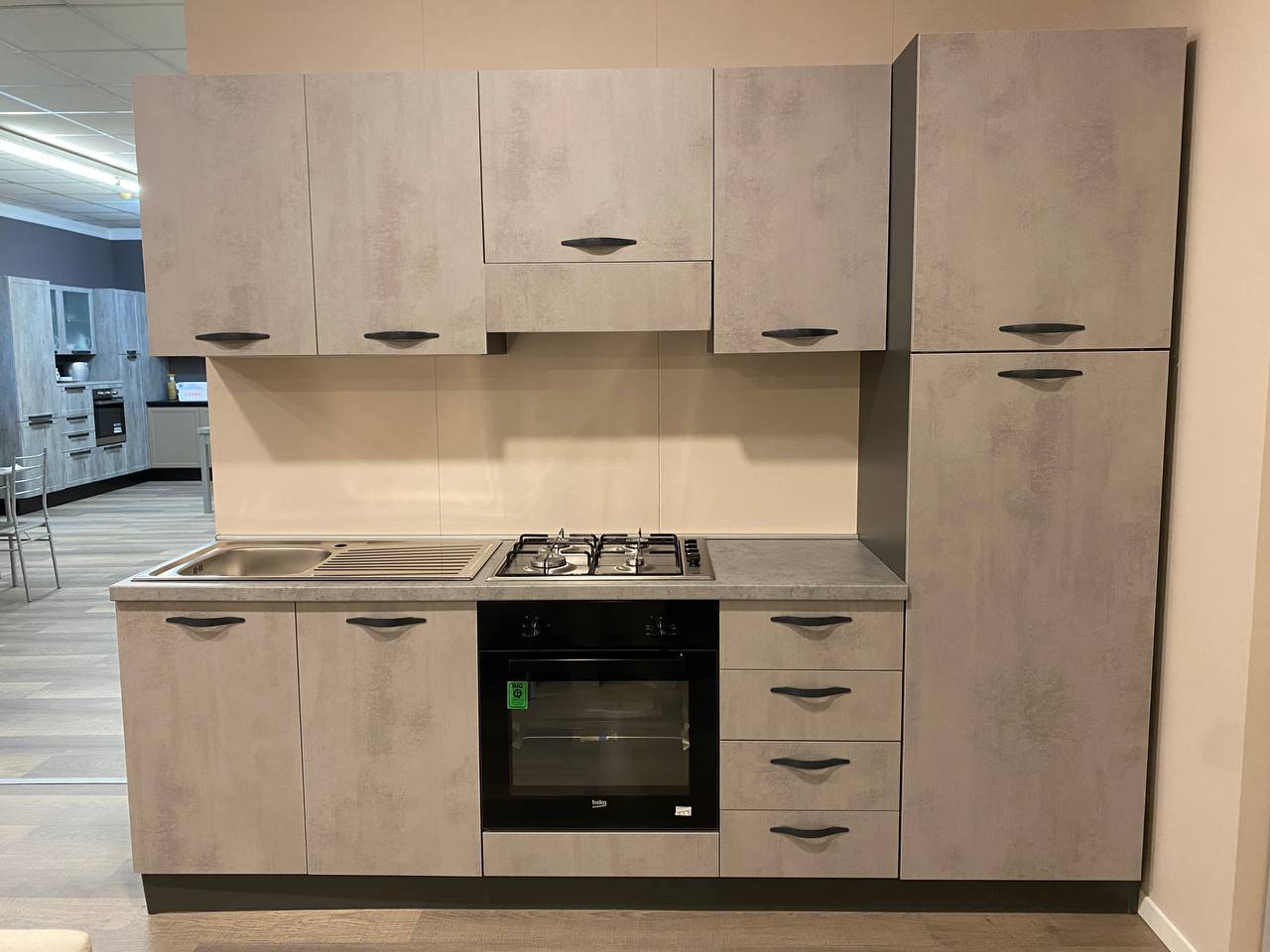 Cucina lineare cemento fumo
