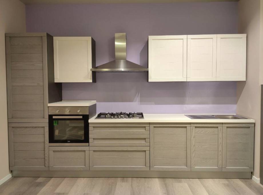 Cucina lineare componibile completa di 4 elettrodomestici (frigorifero, forno, piano cottura, lavastoviglie)