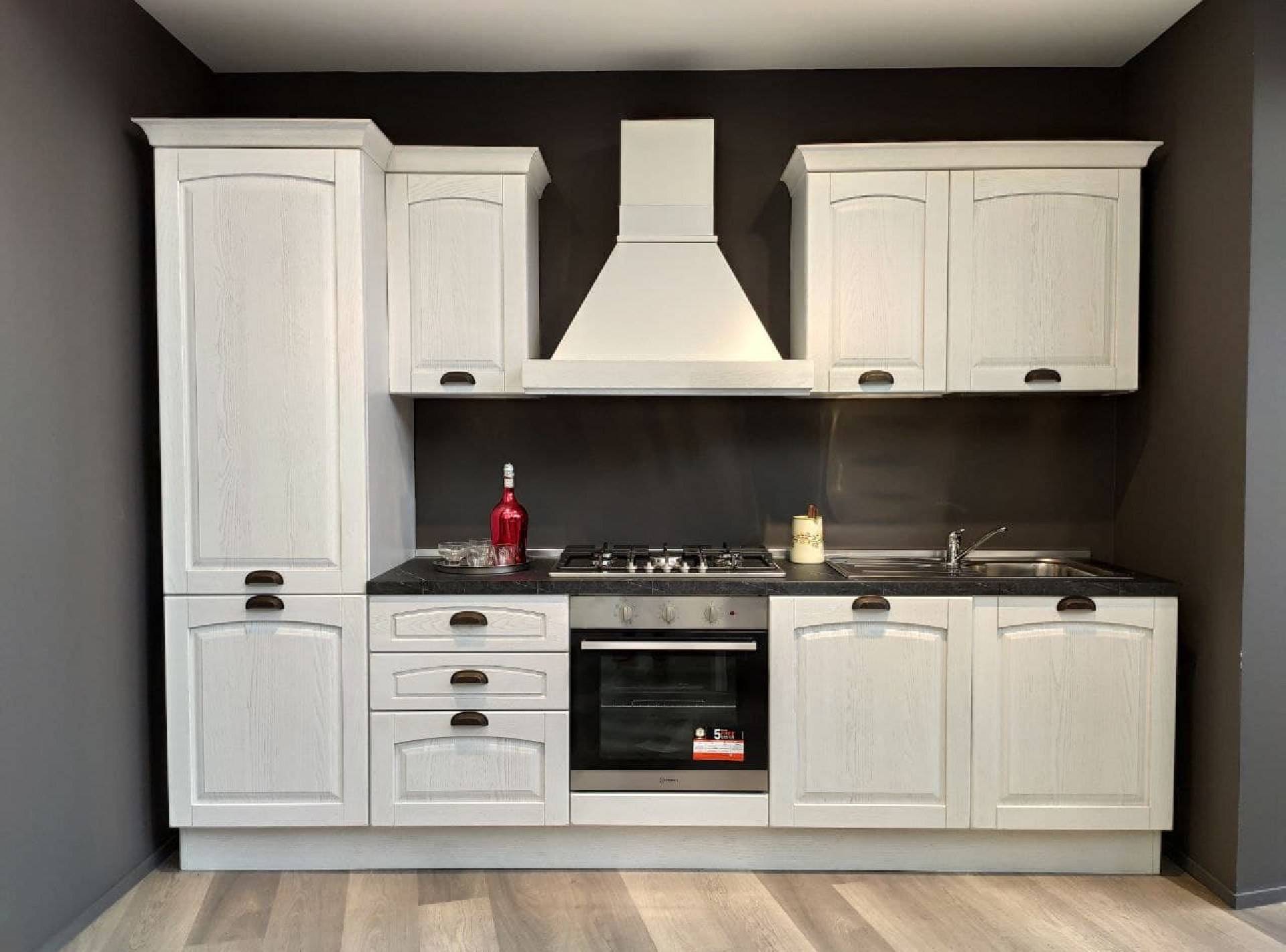 Cucina lineare dallo stile classico completa di 4 elettrodomestici (piano cottura, forno, frigo e lavastoviglie) componibile secondo le tue esigenze e i tuoi ambienti