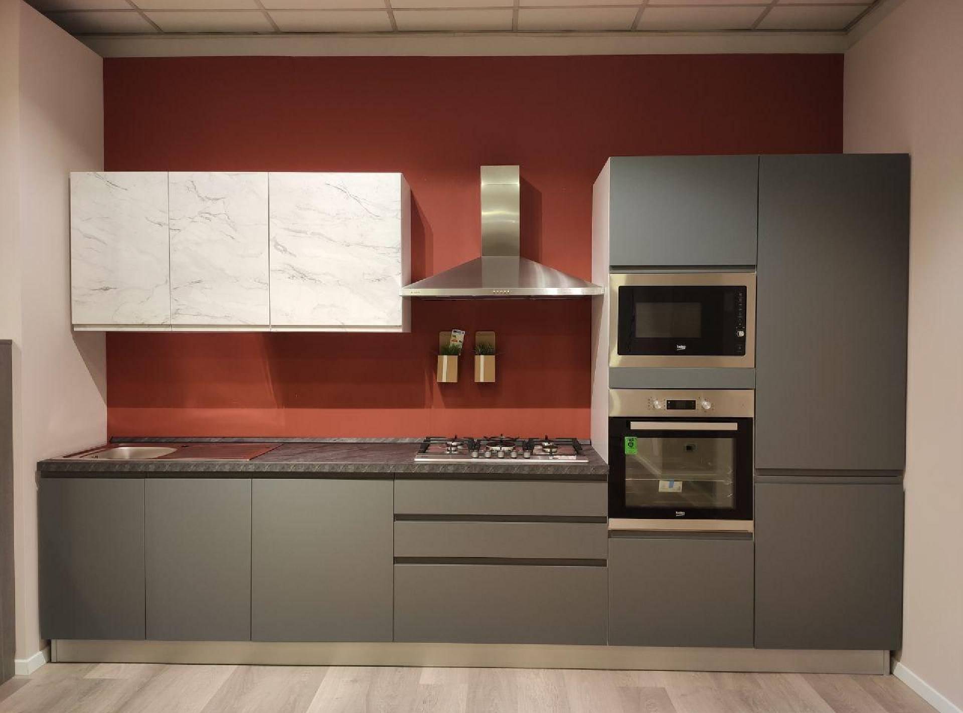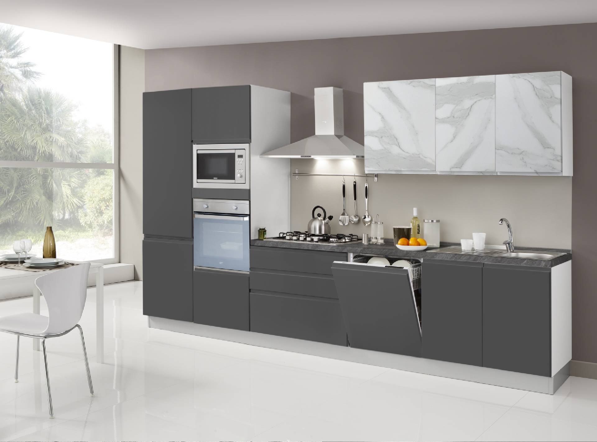 Cucina lineare bloccata completa di 5 elettrodomestici (frigo, forno, piano cottura, microonde e lavastoviglie)