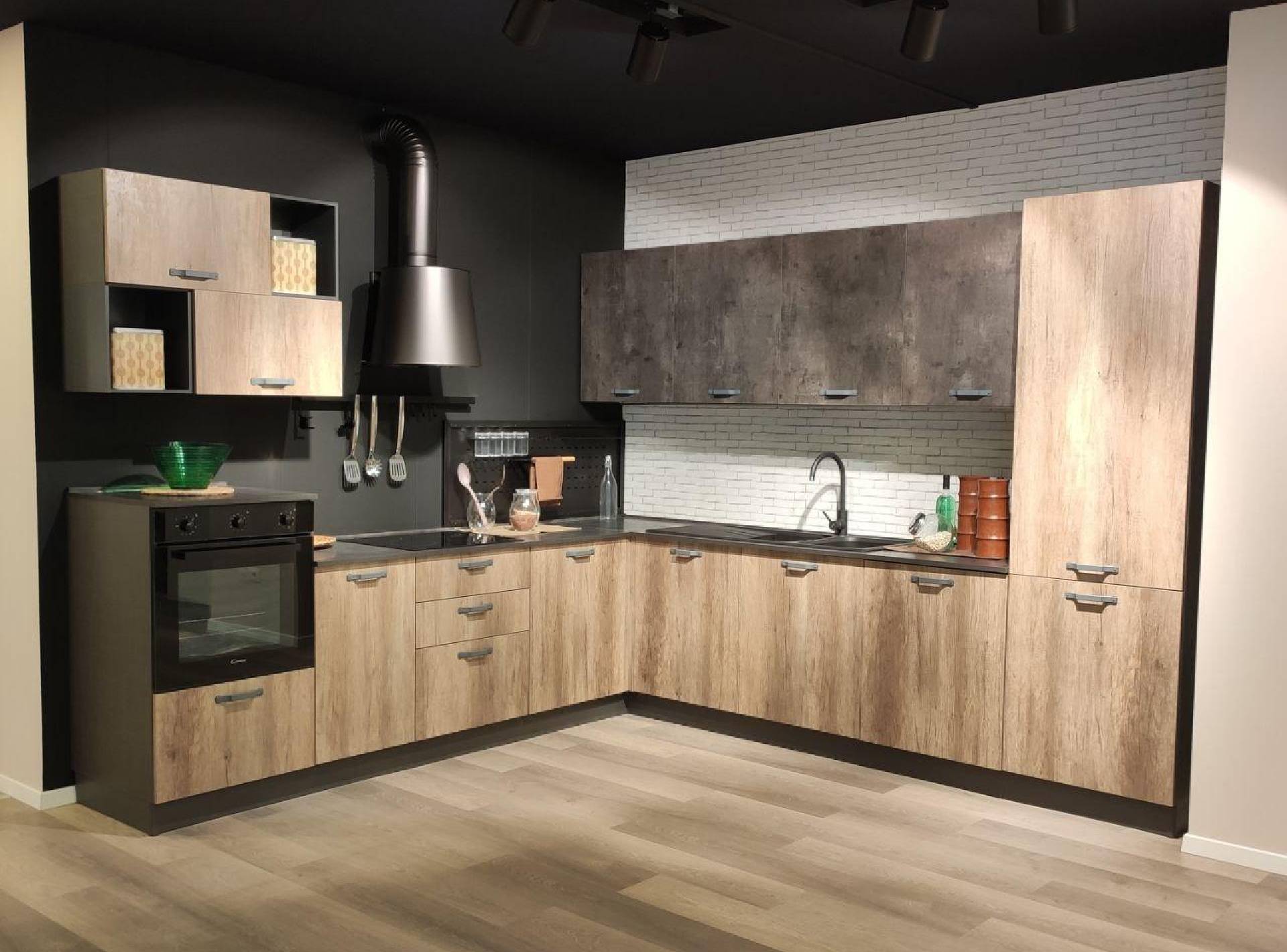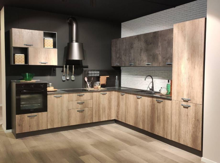 Cucina angolare componibile completa di 4 elettrodomestici (frigorifero, forno, piano cottura, lavastoviglie)
