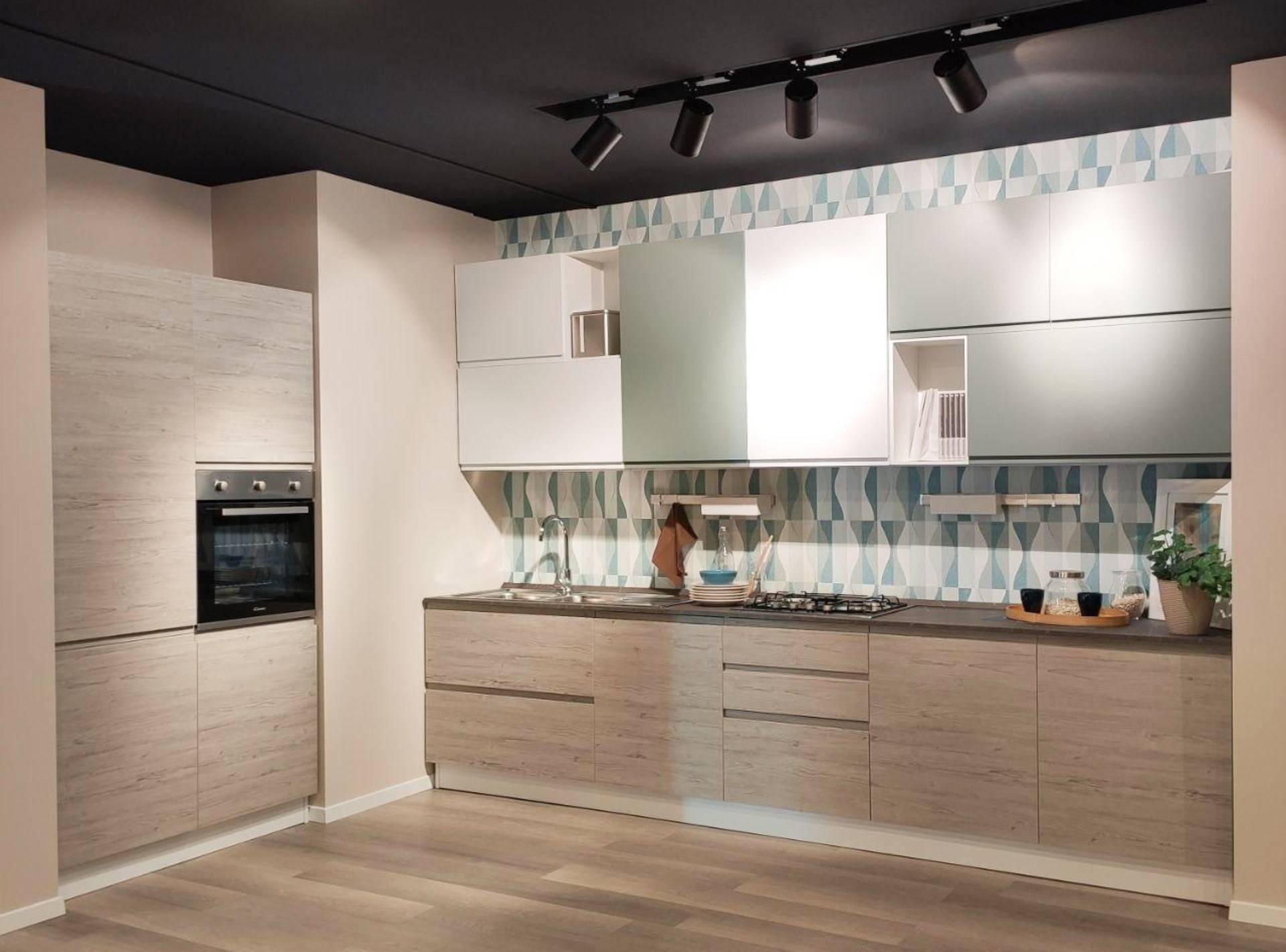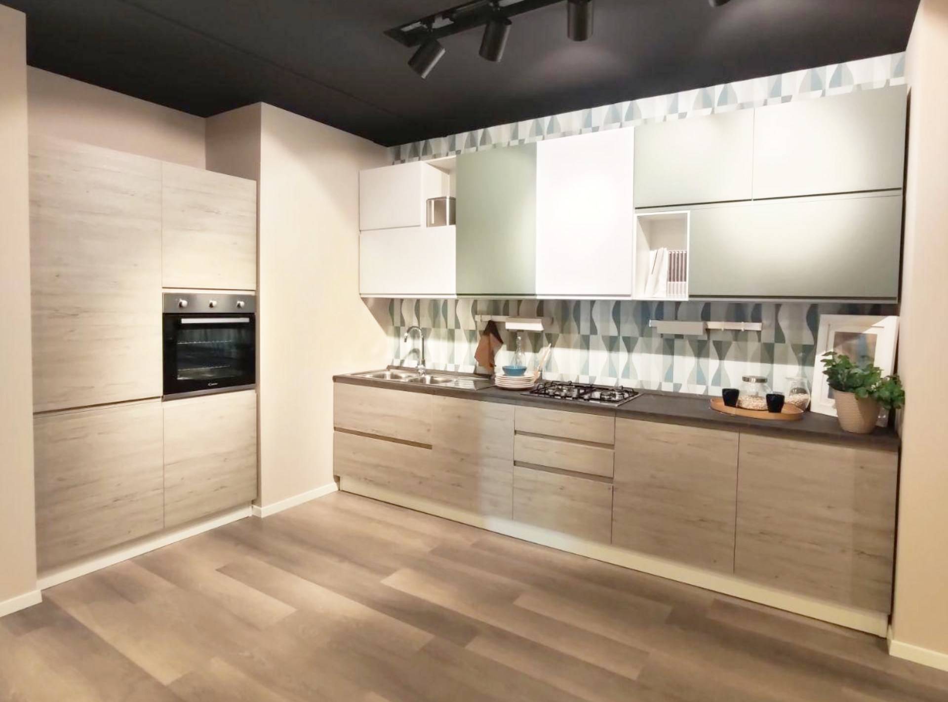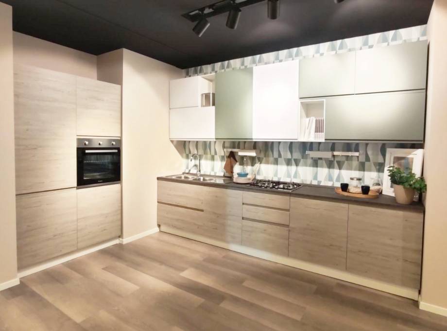 Cucina lineare componibile completa di 4 elettrodomestici (frigorifero, forno, piano cottura, lavastoviglie)