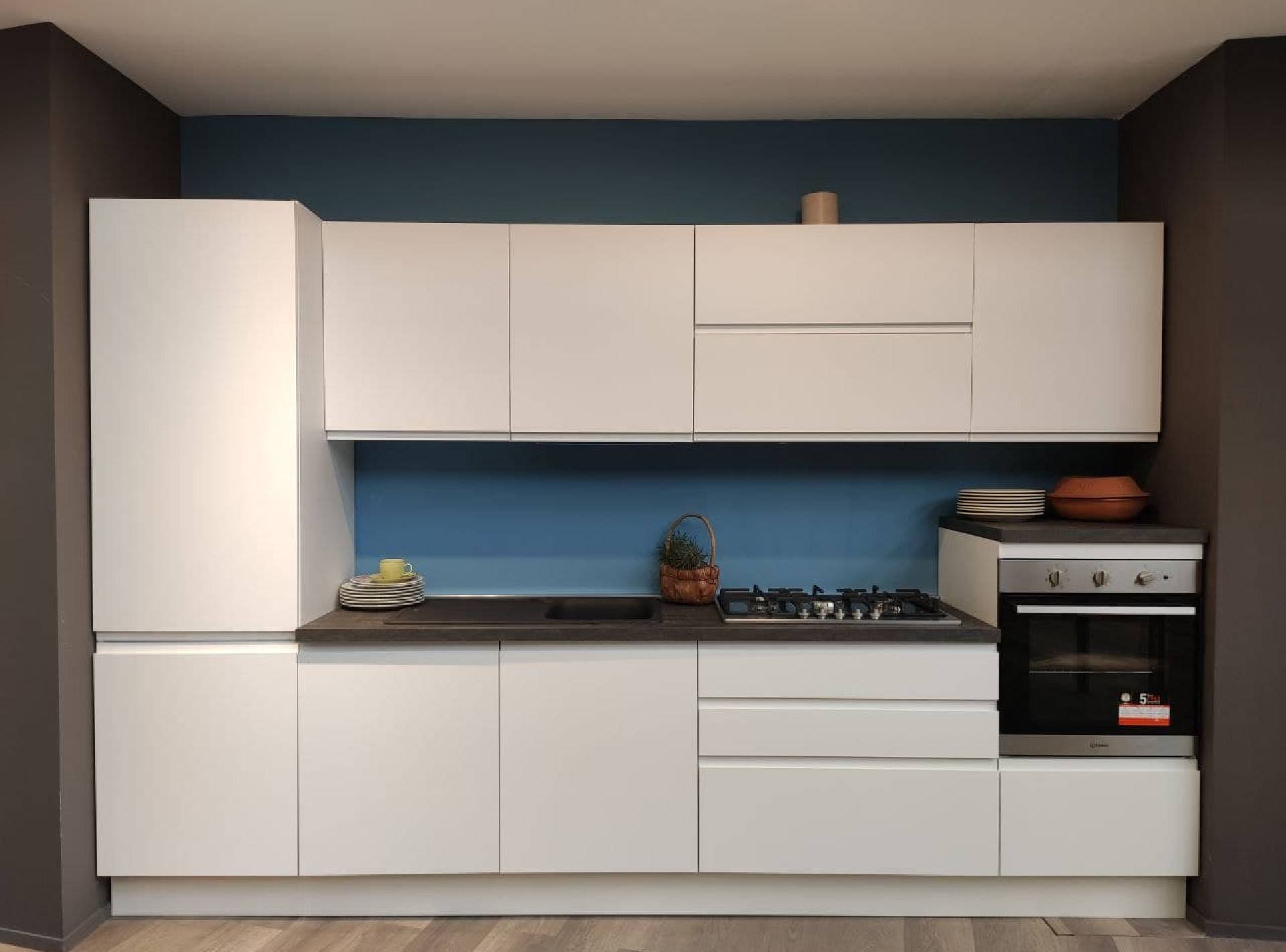 Cucina lineare moderna completa di 4 elettrodomestici (piano cottura, forno, frigo e lavastoviglie) componibile secondo le tue esigenze e i tuoi ambienti