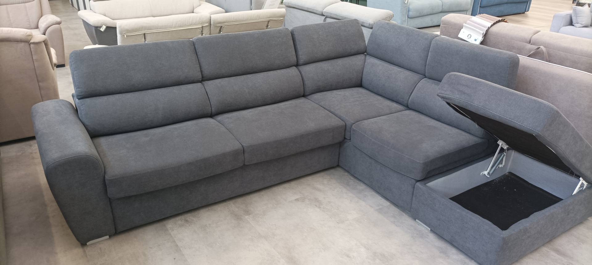 Divano letto angolare DX con pouf contenitore