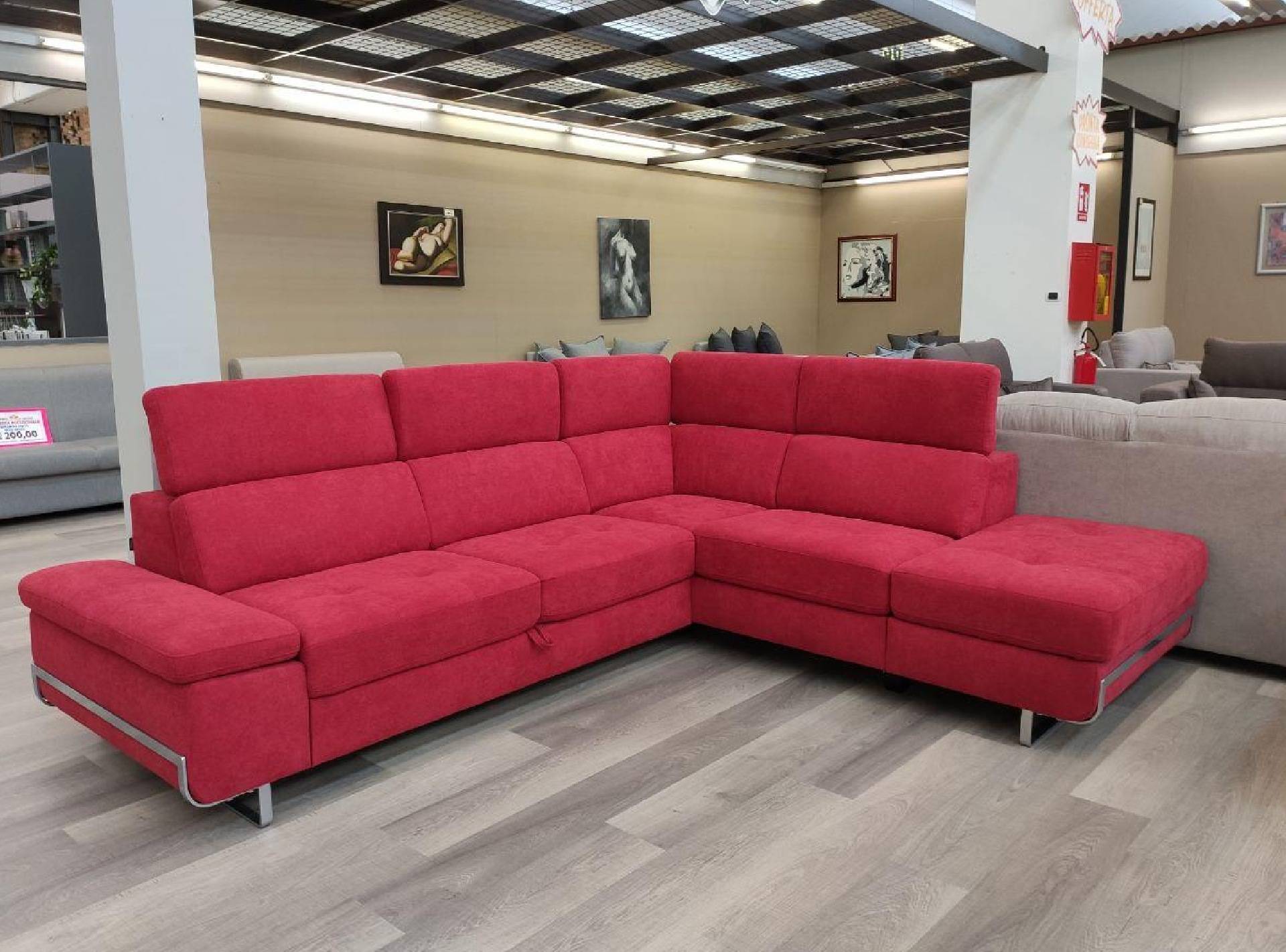 Divano letto angolare con poggiatesta reclinabili e pouff contenitore terminale