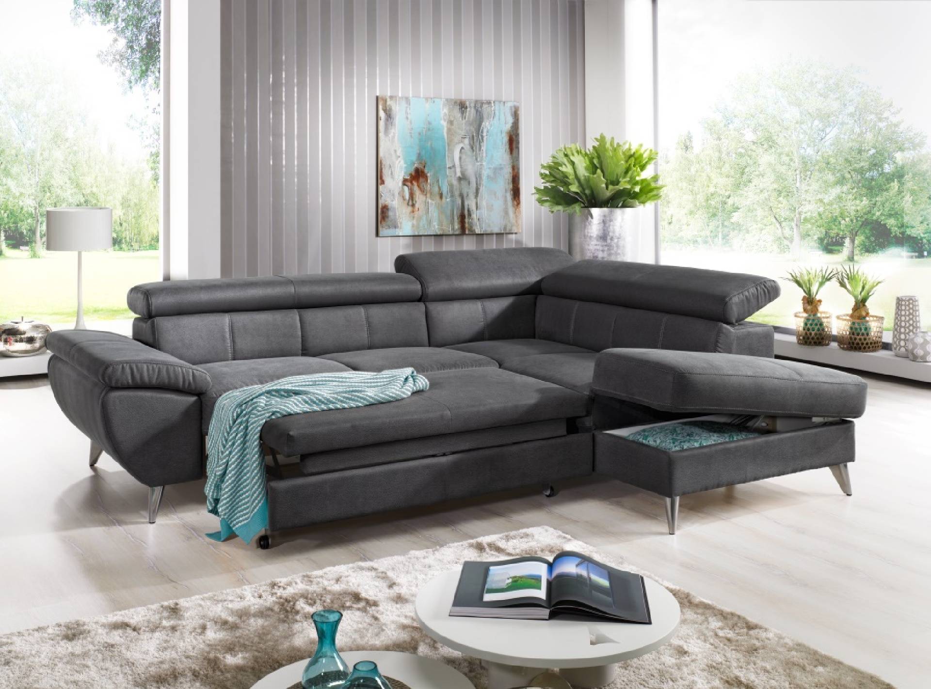 Divano letto angolare destro o sinistro con pouff contenitore terminale