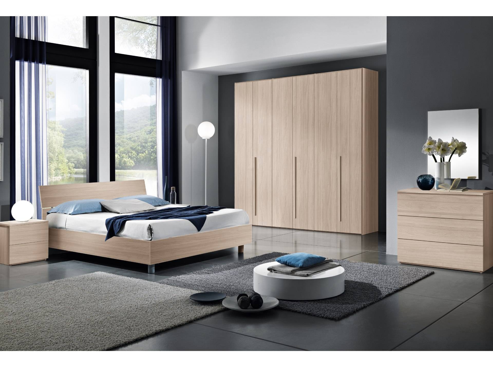 Camera matrimoniale completa di letto, armadio con anta battente, comodini, comò e specchiera