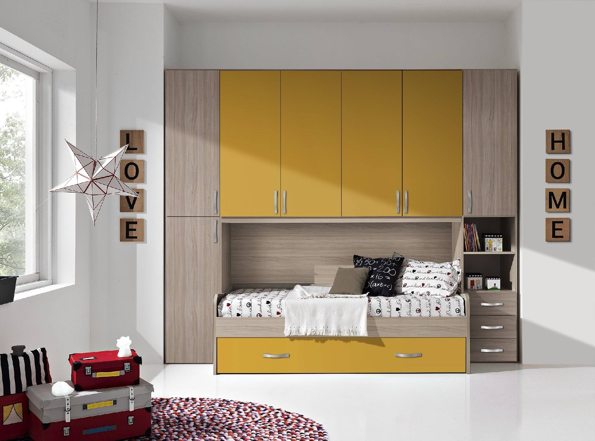 Cameretta a ponte con doppio letto estraibile, ante battenti, cassetti e vani a giorno