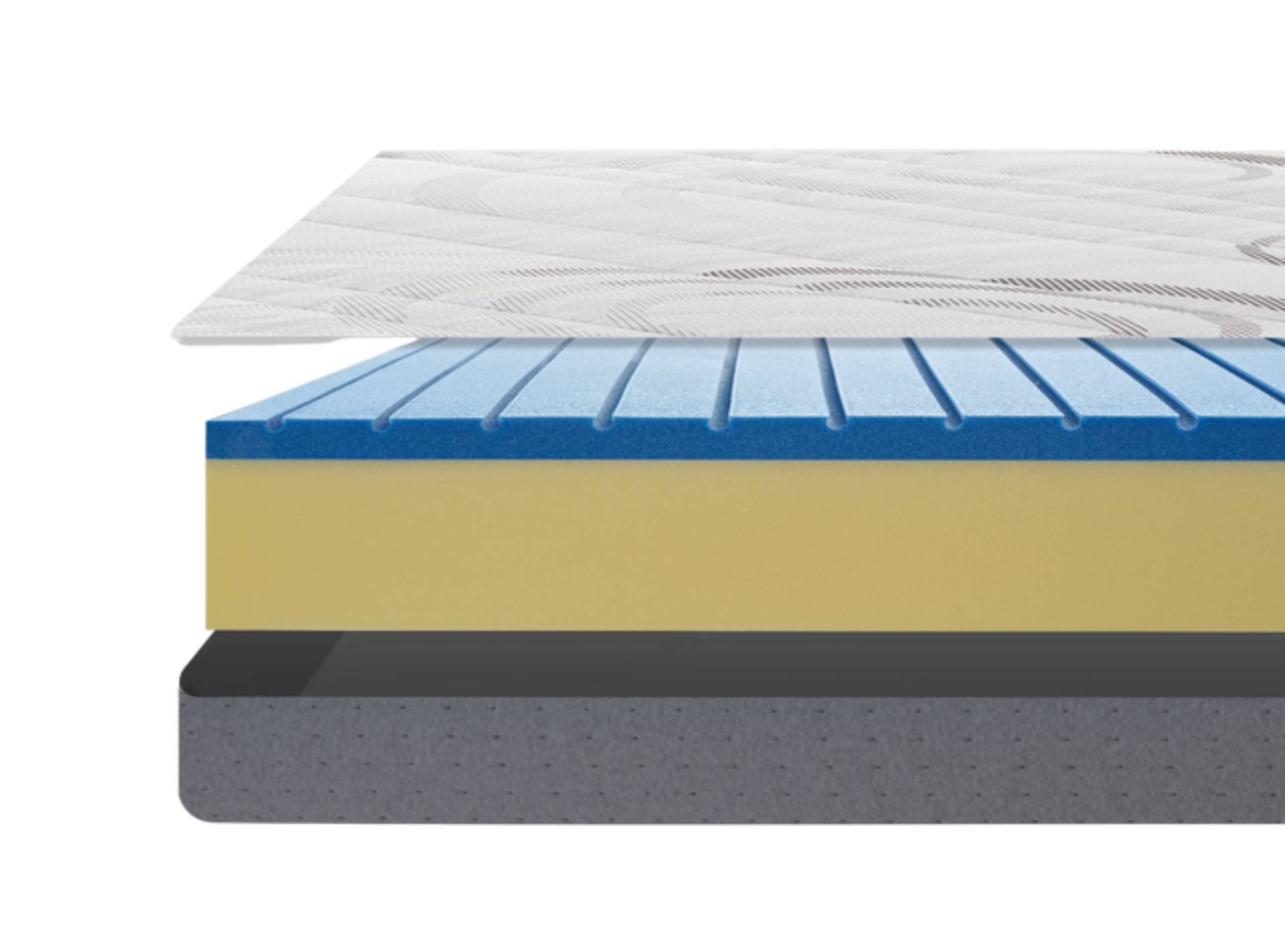 Materasso in Memory Foam che assicura un sostegno confortevole grazie al suo adattamento alla colonna vertebrale.