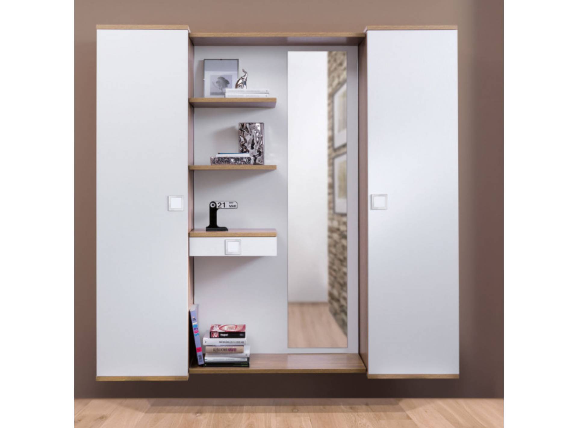 - 1 pannello con specchio rettangolare, 1 cassetto, 4 mensole