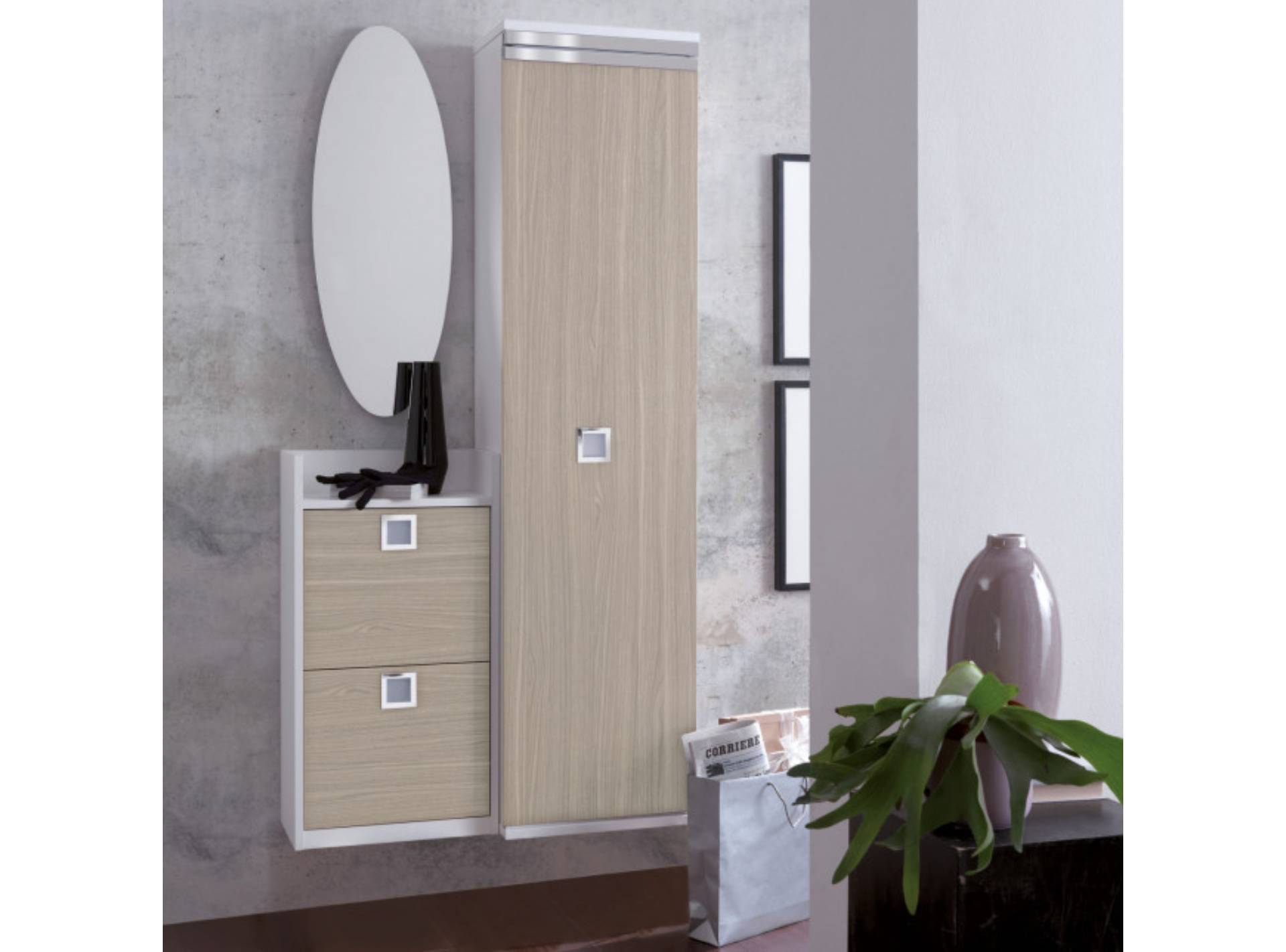 L' ingresso con armadietto contenitore Family F15 mostrato nell'immagine si compone di:
