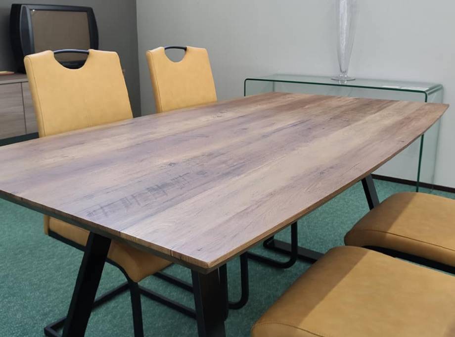Tavolo rettangolare sagomato noce antico e struttura in metallo