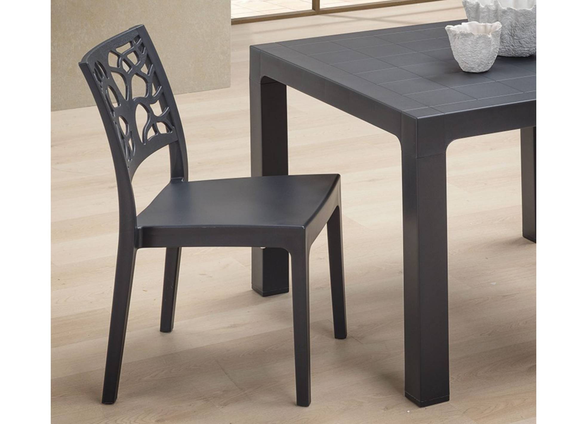 Il motivo intagliato sullo schienale rende questa sedia unica e glamour.