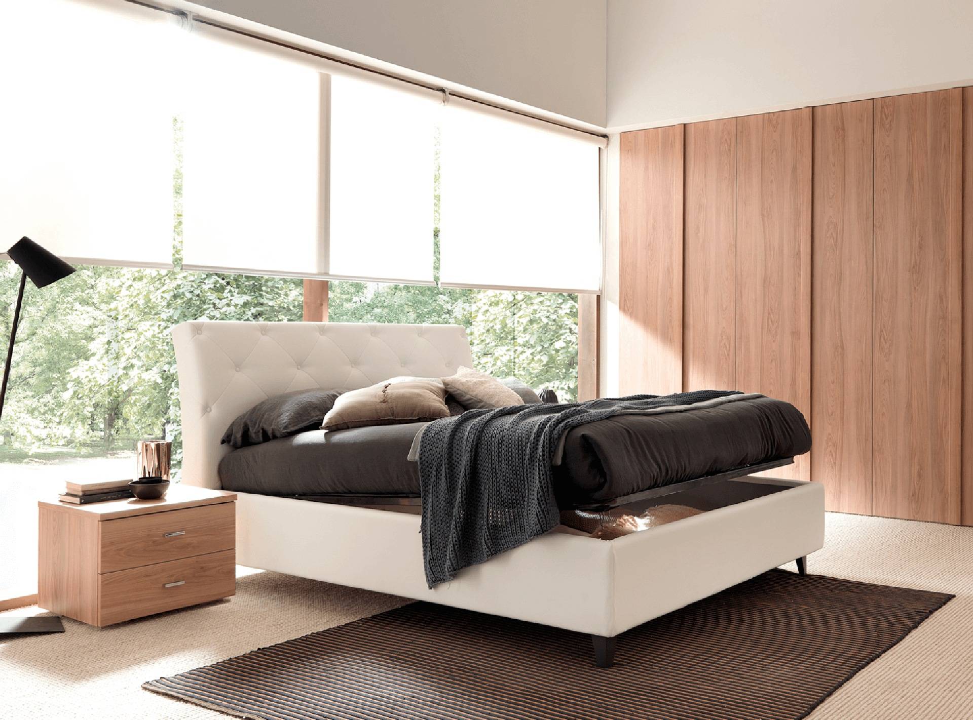 Testiera con trapuntatura effetto capitonnè. Effetto tridimensionale dal motivo romboidale con applicazione di bottoni sul rivestimento. Un modello intramontabile, dal profilo curato e dai particolari ricercati che rappresenta appieno il concetto di raffinatezza.