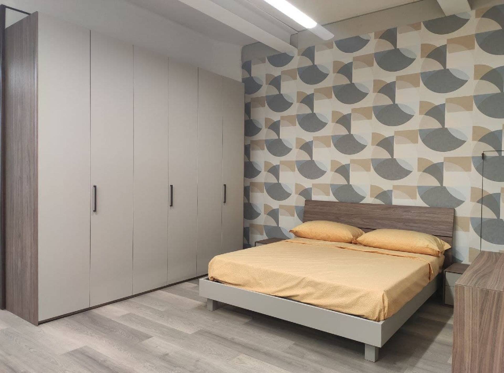 Camera completa di armadio con ante battenti, letto matrimoniale, comò, comodini e specchiera